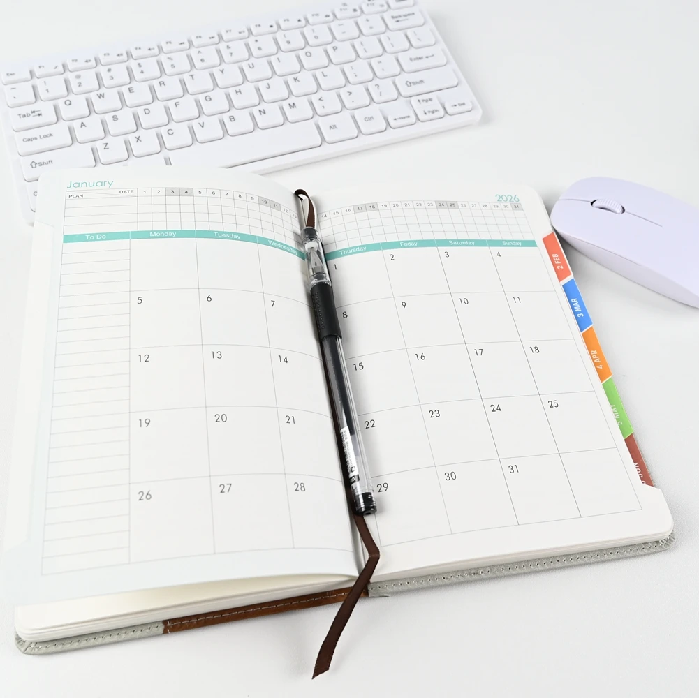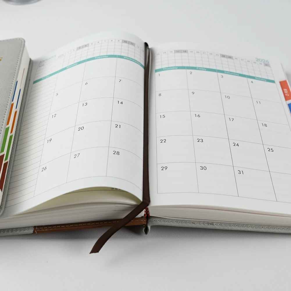 Keyword: Customizable A5 Leather Journal Hardback Cover 200 Pages with Embedded Calendar