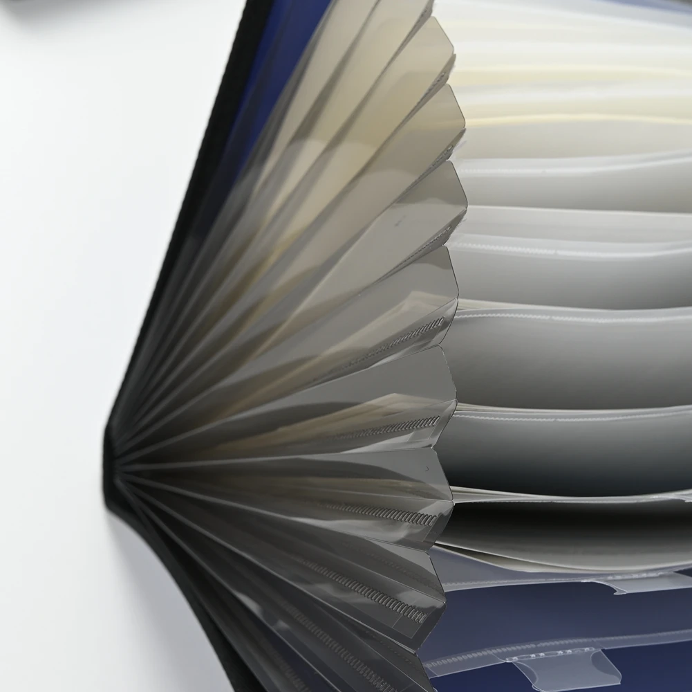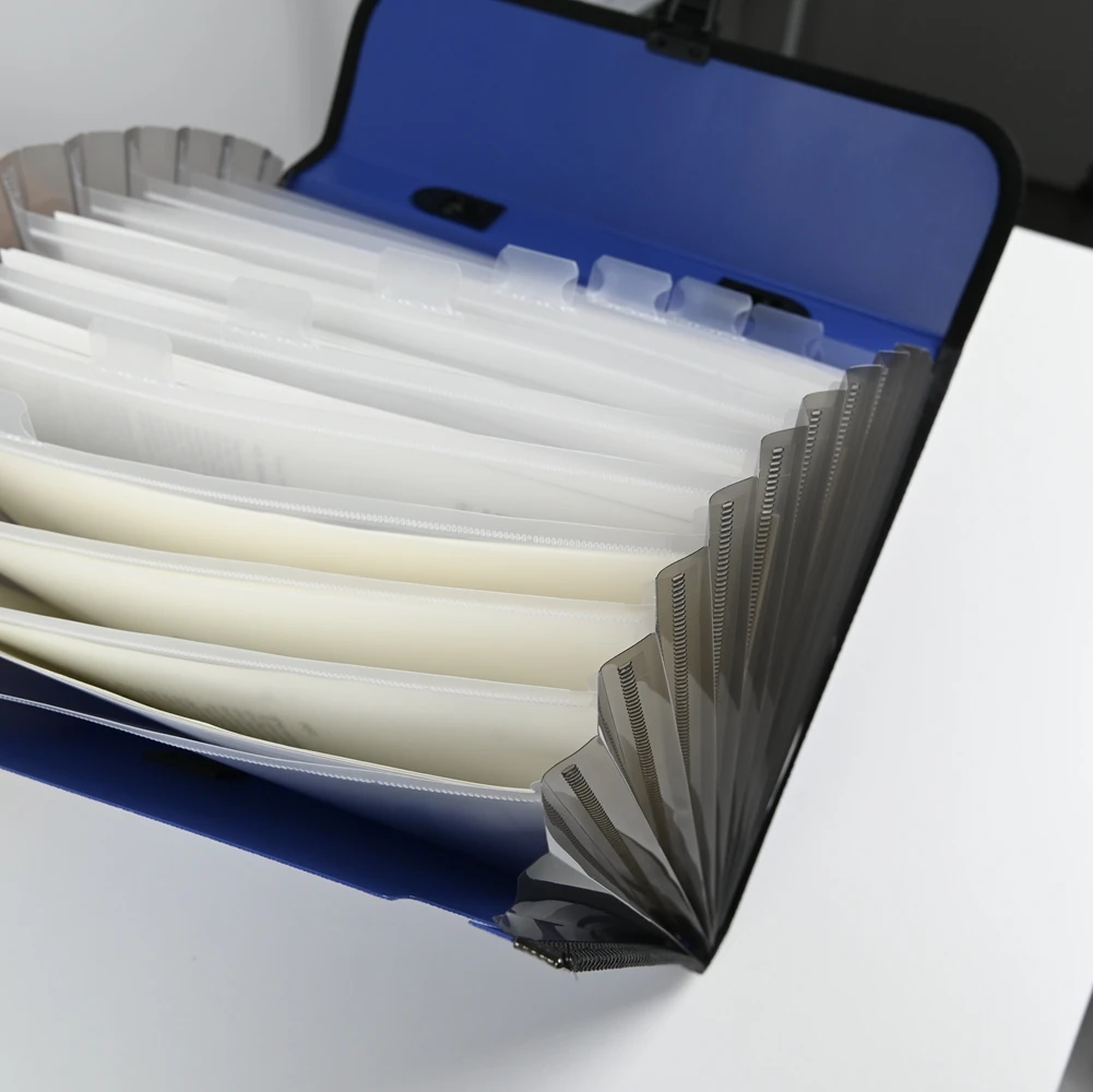 Keyword: A4 Durable Accordion File 0.85mm Thick PP Cover Sewn Edges Press Button Snap 13 Compartments Elastic Handle Custom