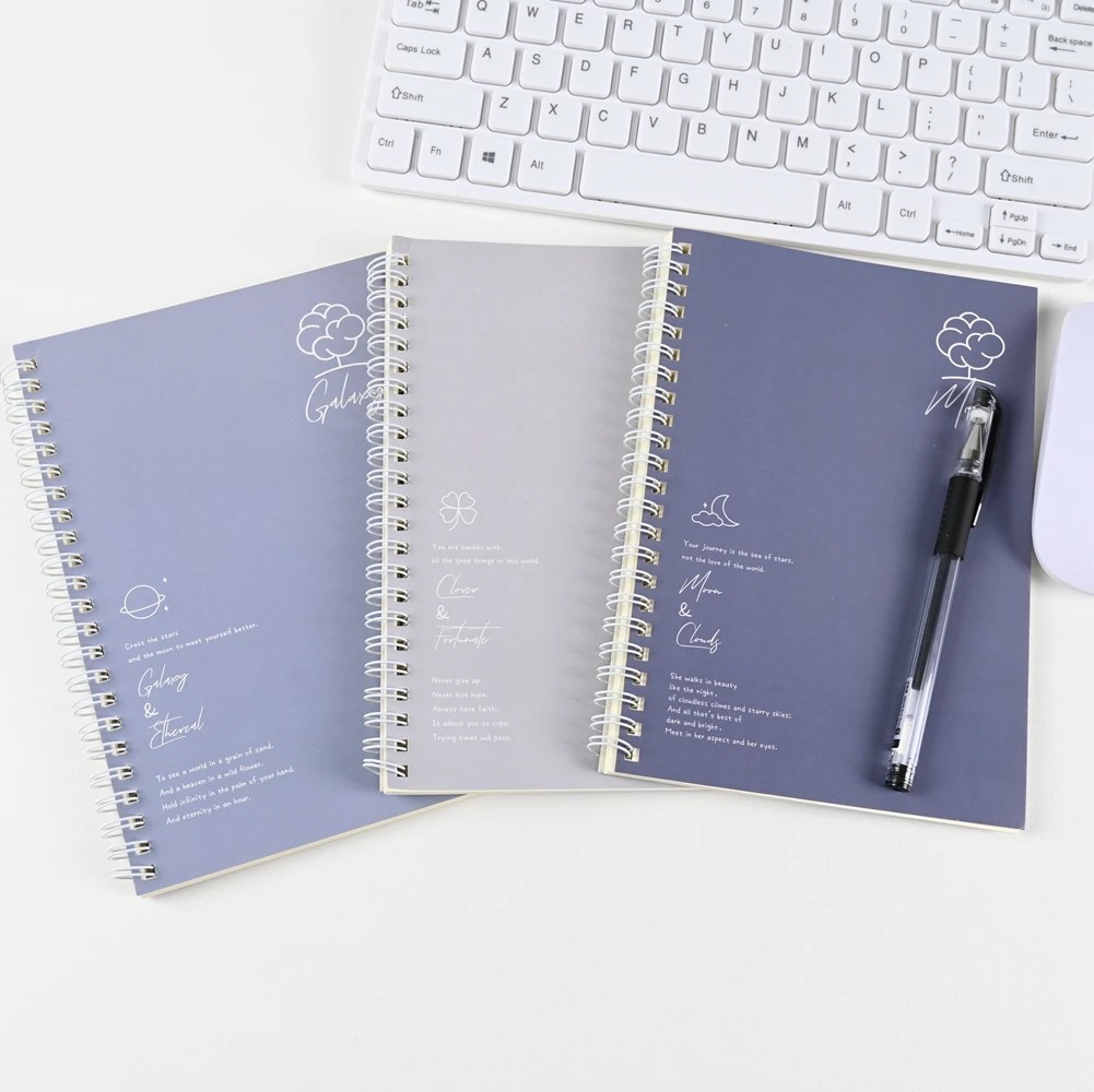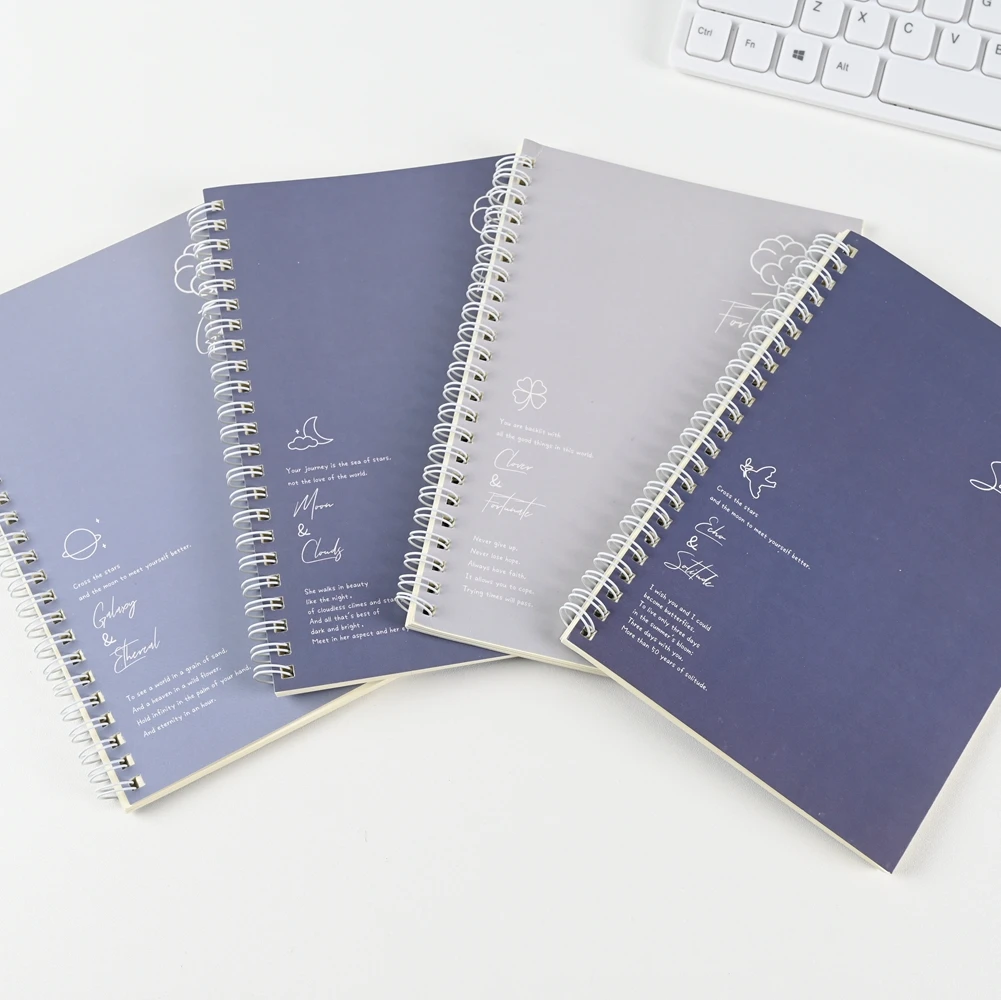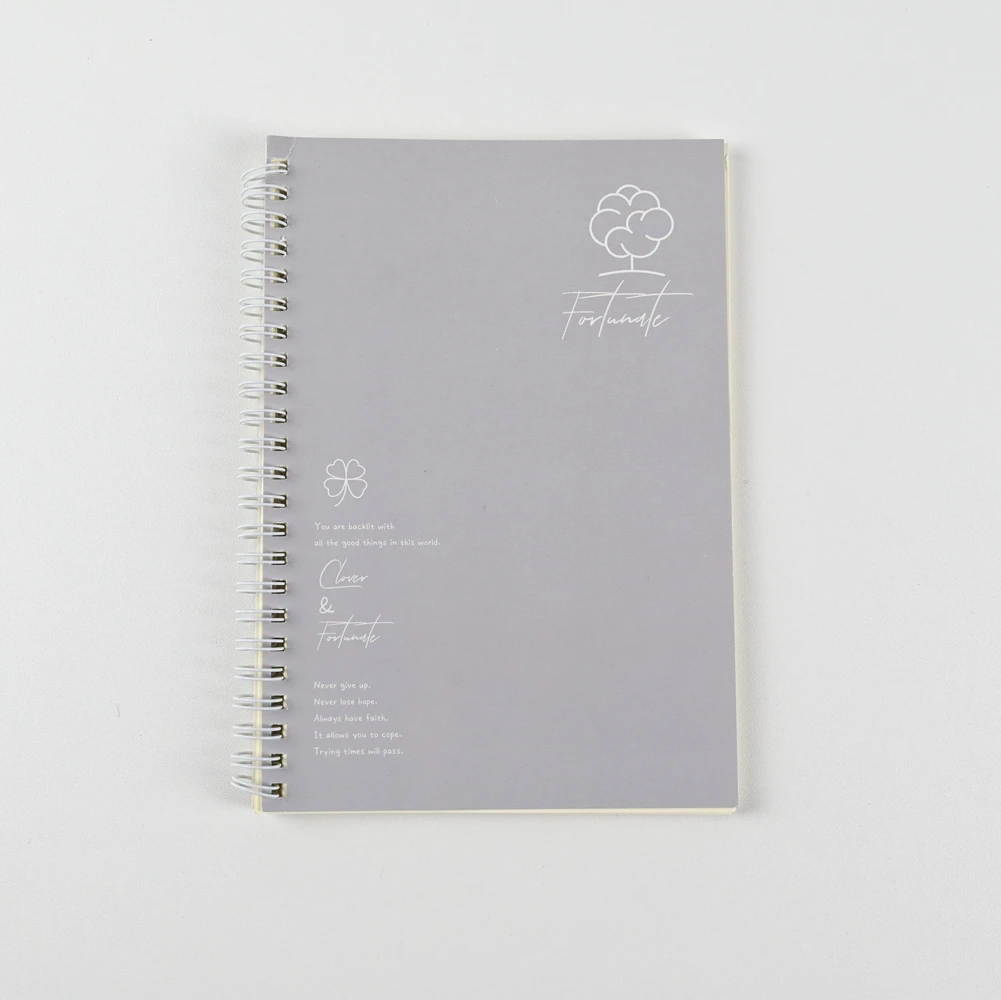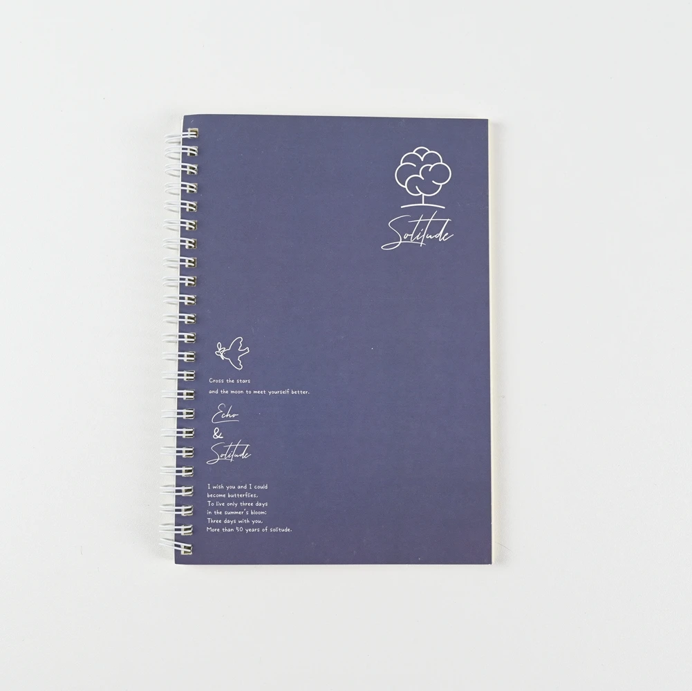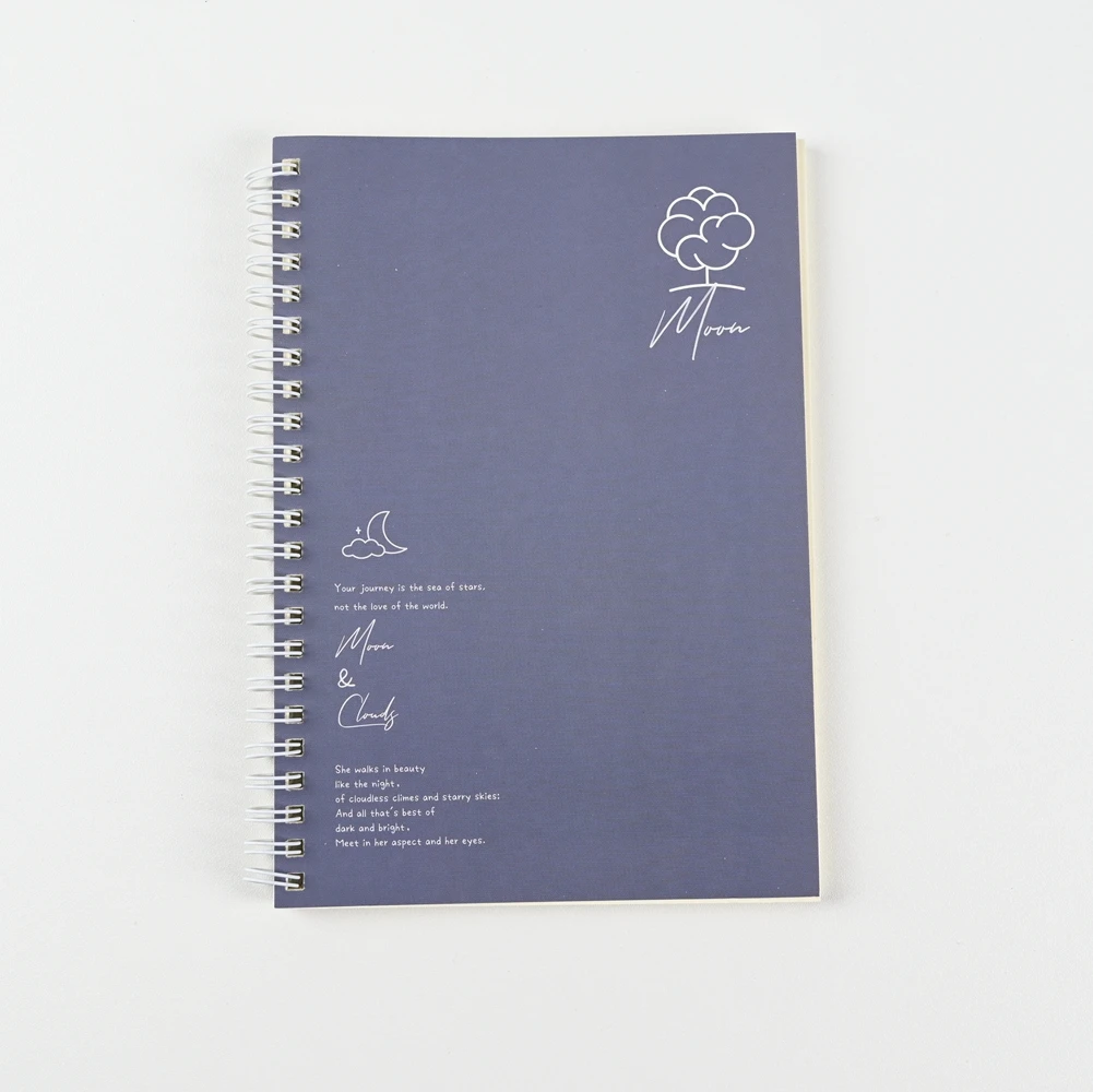 Keyword: A5 B5 Spiral Notebook 60 Sheets Ivory Card Cover with Metal Spiral Binding Open Flat Feature and Custom Imprint