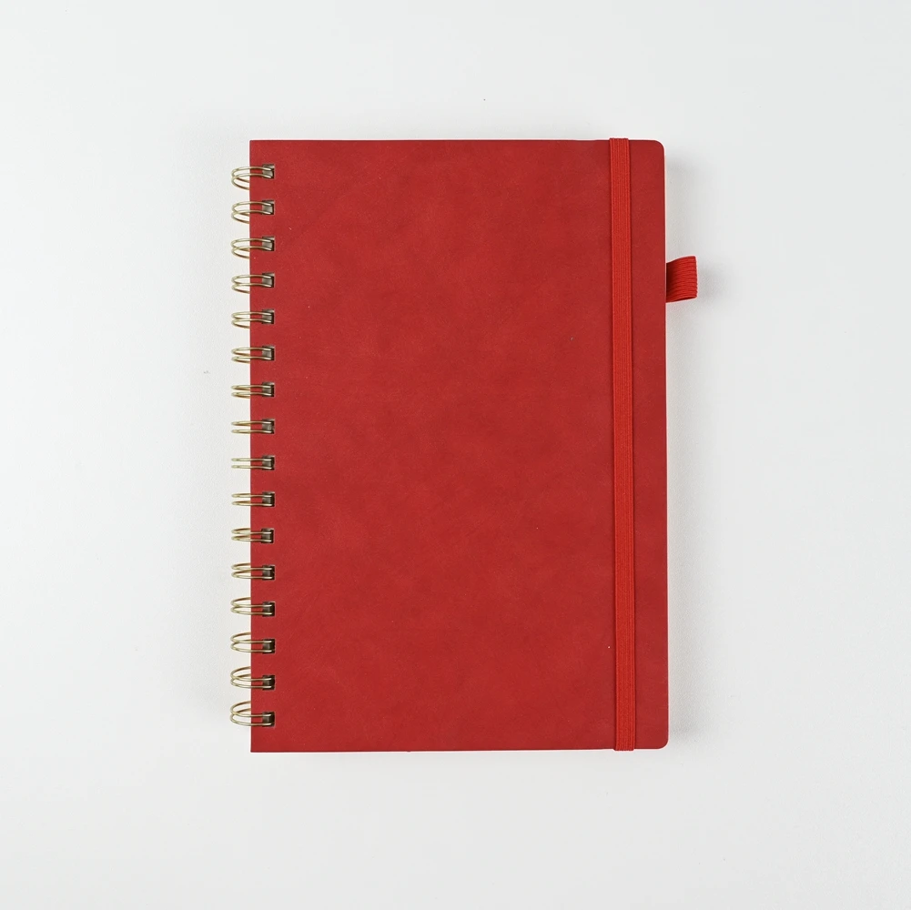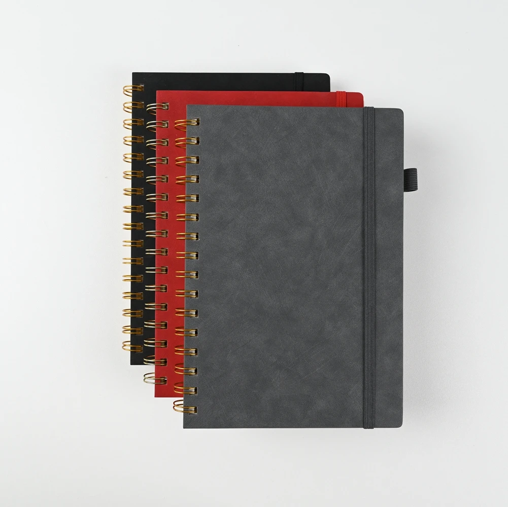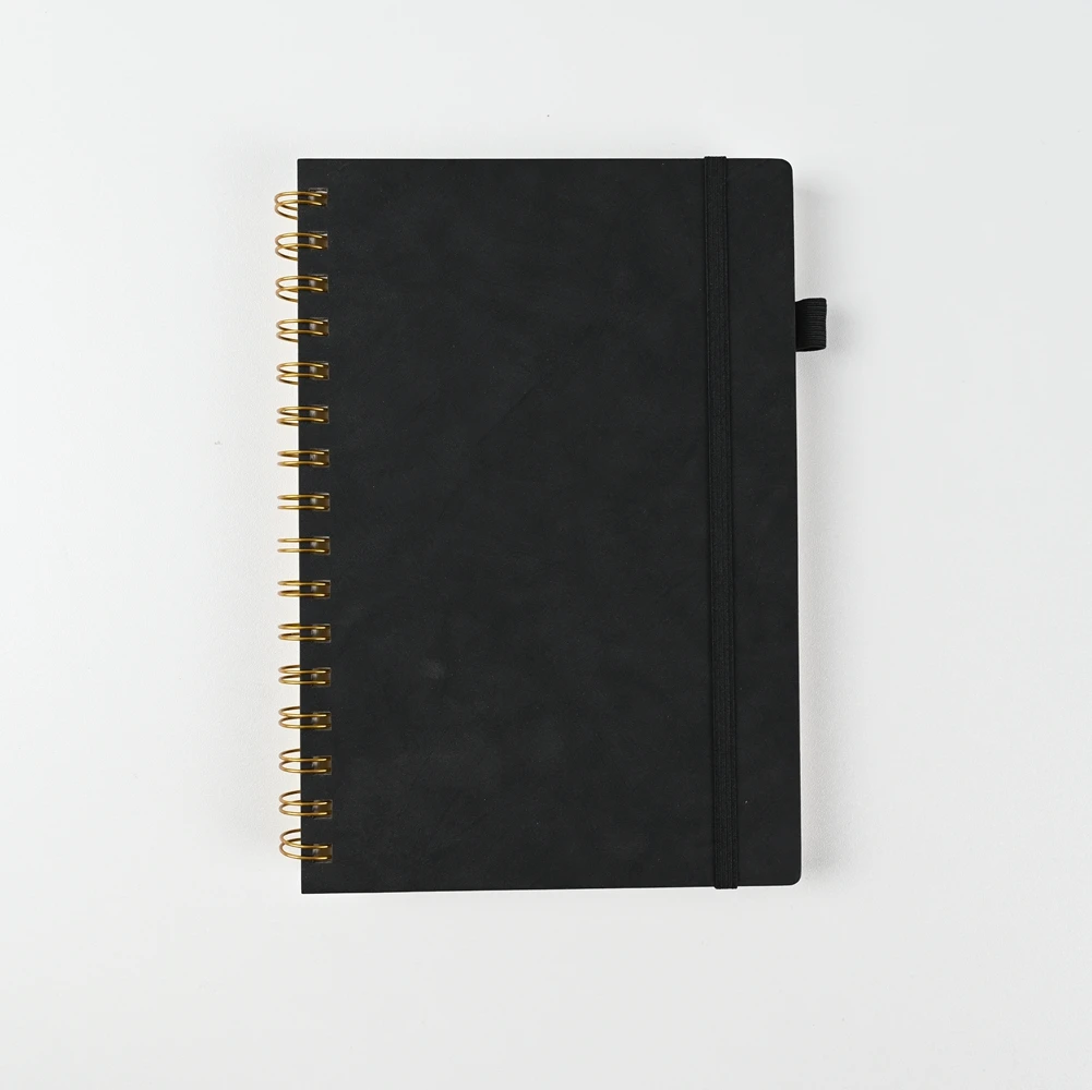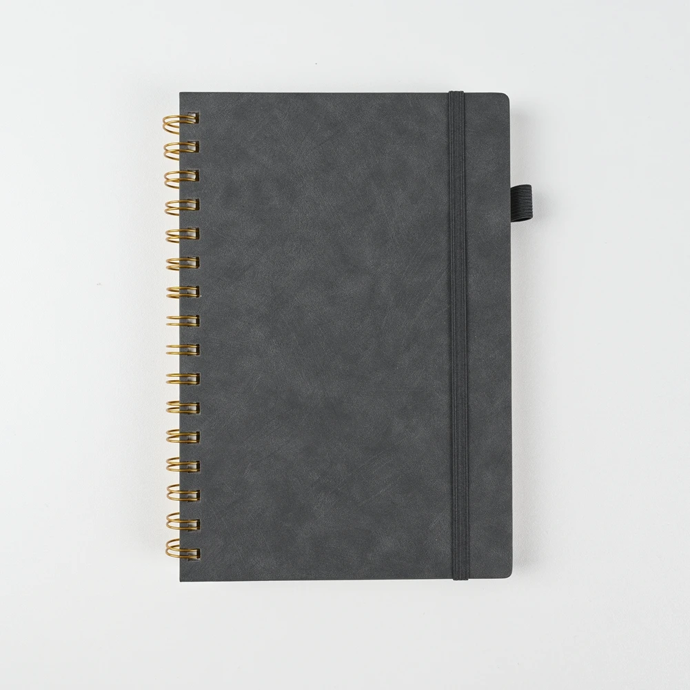 Keyword: Premium Custom Spiral Notebook A5 B5 140 Pages PU Leather Cover with Metal Spiral Binding and Multi-Functional Pen Hold