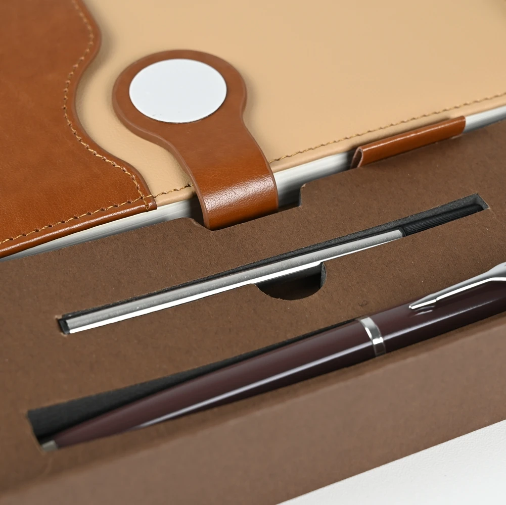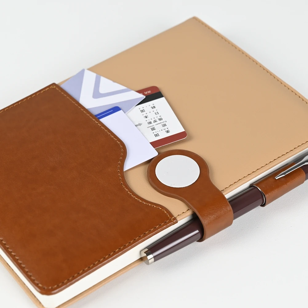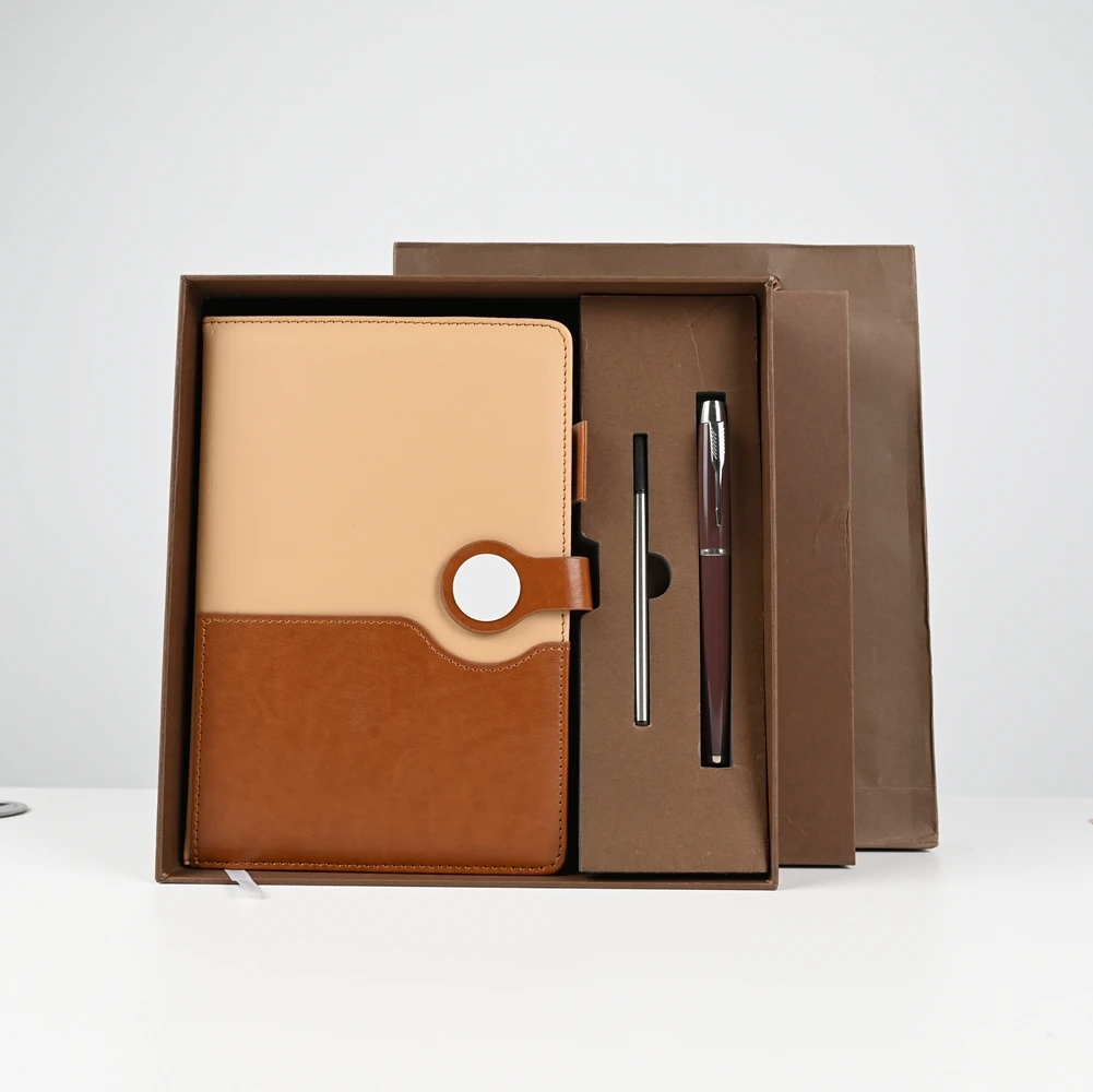 Keyword: A5 Custom Logo Gift Notebook Set 100 Pages Luxury PU Cover with Innovative Pocket Design Thermal Binding Open Flat